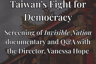 Today, INVISIBLE NATION became the 3rd Most Popular Documentary of All Time in Taiwan's History!